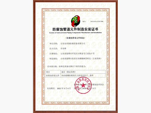 山東東興揚(yáng)(淄博五環(huán))防腐設(shè)備有限公司是專業(yè)的鋼襯玻璃廠家,鋼襯玻璃,鋼襯玻璃管道等產(chǎn)品使用壽命長,造價低,集開發(fā)、設(shè)計、生產(chǎn)、經(jīng)營于一體的專業(yè)性的工業(yè)防腐單位,被評選為中國 工業(yè)防腐蝕技術(shù)協(xié)會會員企業(yè)單位。